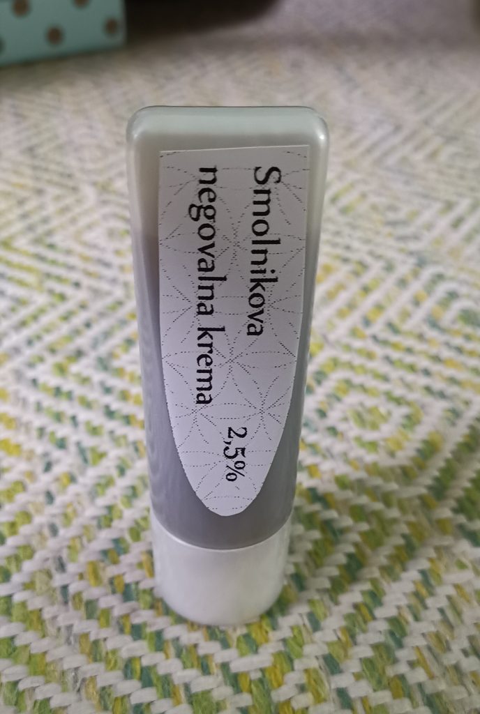 Sestavine: karitejevo maslo, lanolin, olivno olje, konopljino olje, črno olje Smolnik (2,5%), eterično olje sivke, eterično olje čajevca